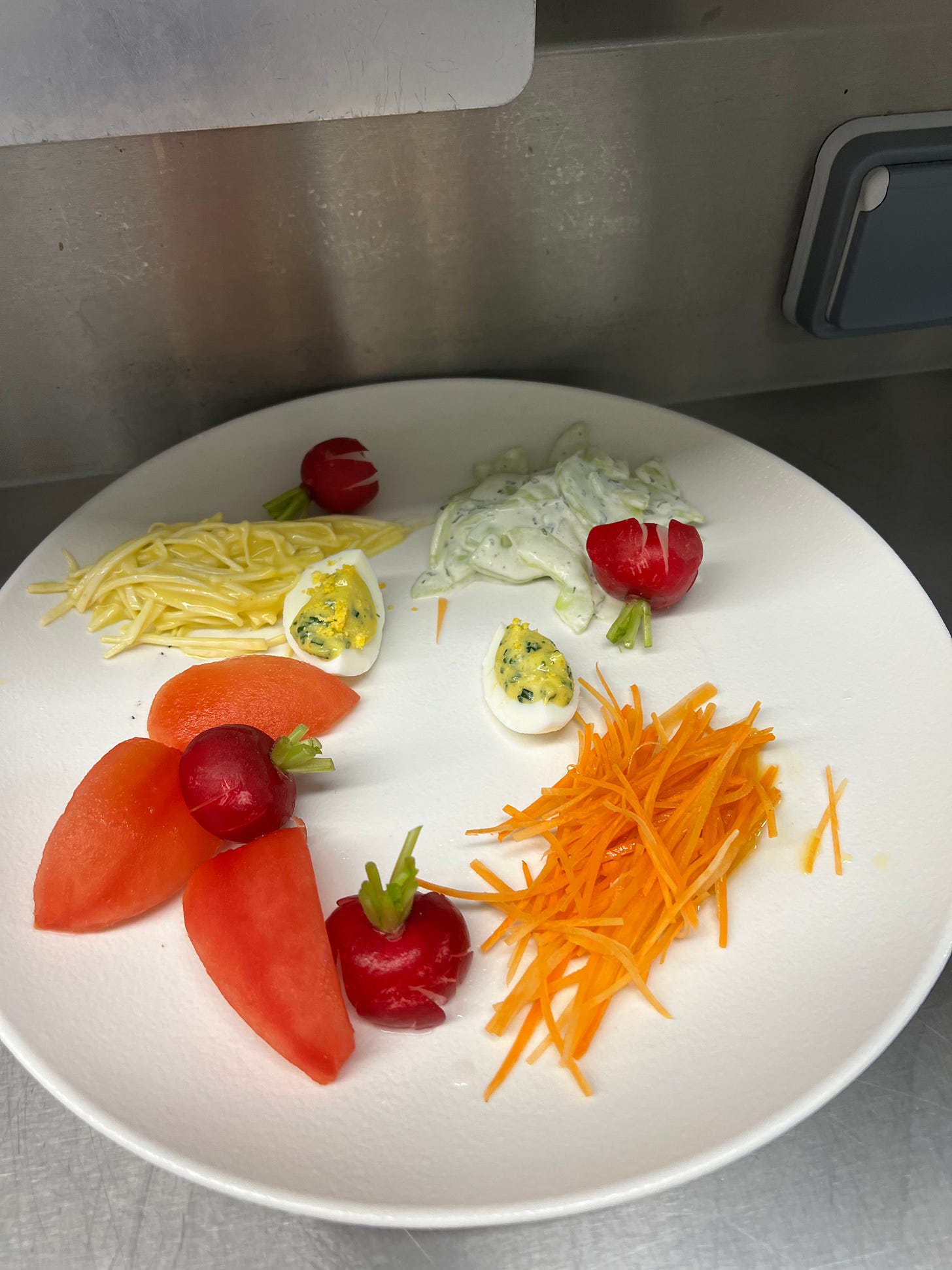 Bad radishes, bad egg! Over dressed daikon. No dressing on carrots. Ugh!!!