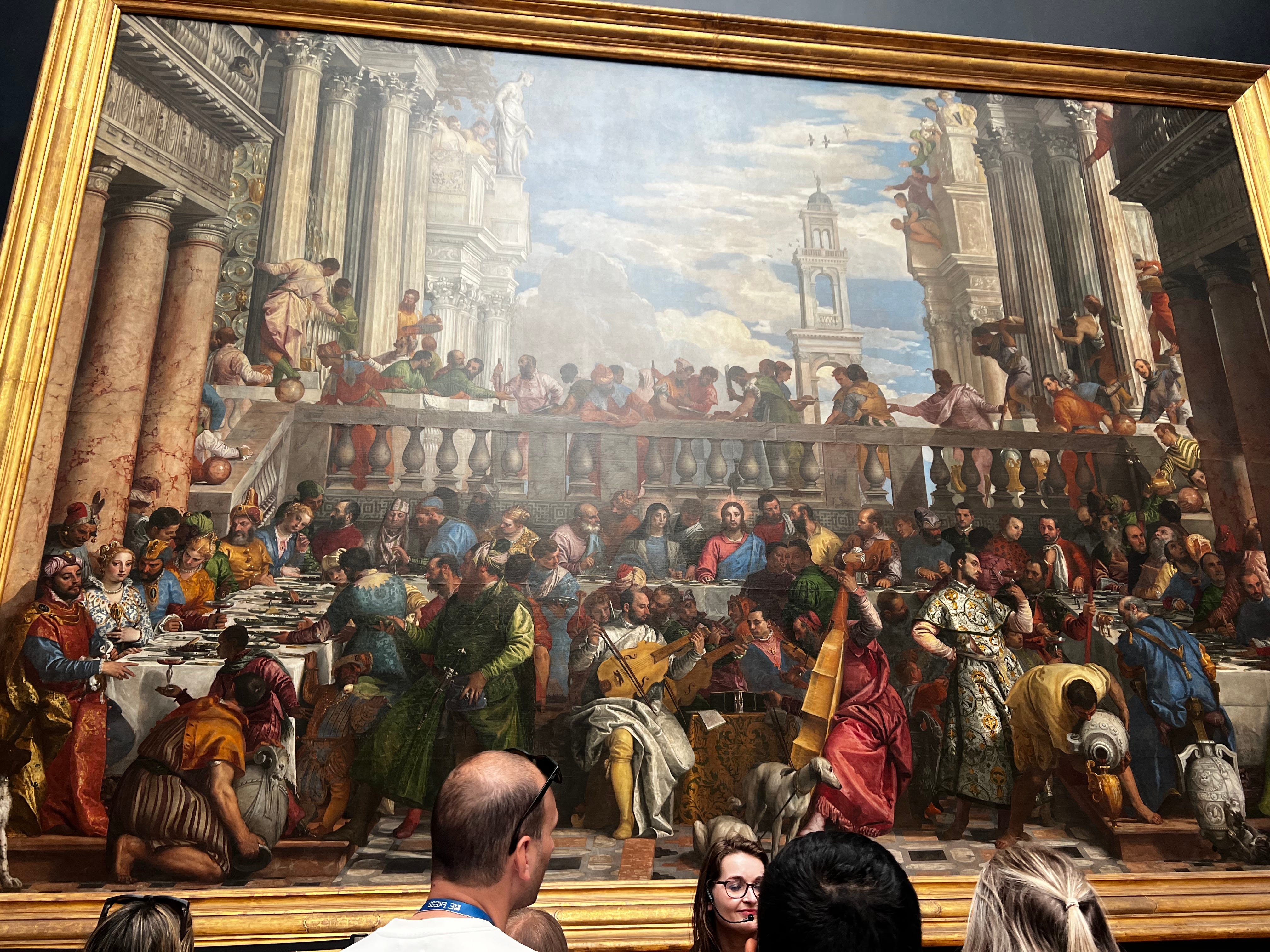 If you don’t visit the Louvre- you should. You don’t have to spend all day either, but it is amazing, and I forget how much is there. I paid a quick visit to my favorite painting-The Wedding Feast at Cana by Veronese, which also happens to be the largest painting in the Louvre. It is spectacular and the figures in it are as big as me and there are more than 80 of them. It must have been a leap of faith just to try to paint it!