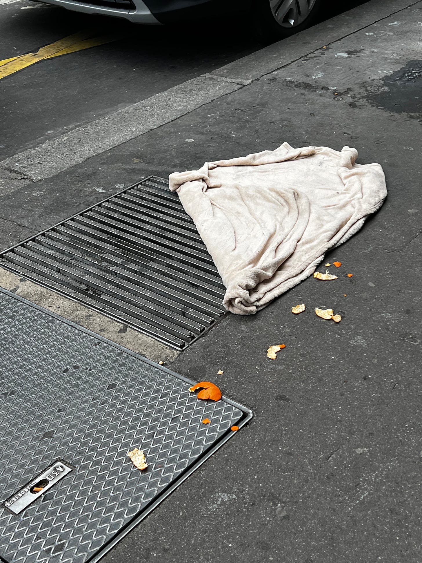 I haven’t yet given y’all the update on the homeless man outside my apartment-the one who was there all winter, and was the potentially unwilling recipient of all my patisserie creations. He is still there. Though, he has traded in his winter sleeping bag for a lighter blanket, and seems to be more on the move. I didn’t even catch sight of him for the first few days I was there, but the telltale signs of orange peels and cigarette butts let me know all was well.