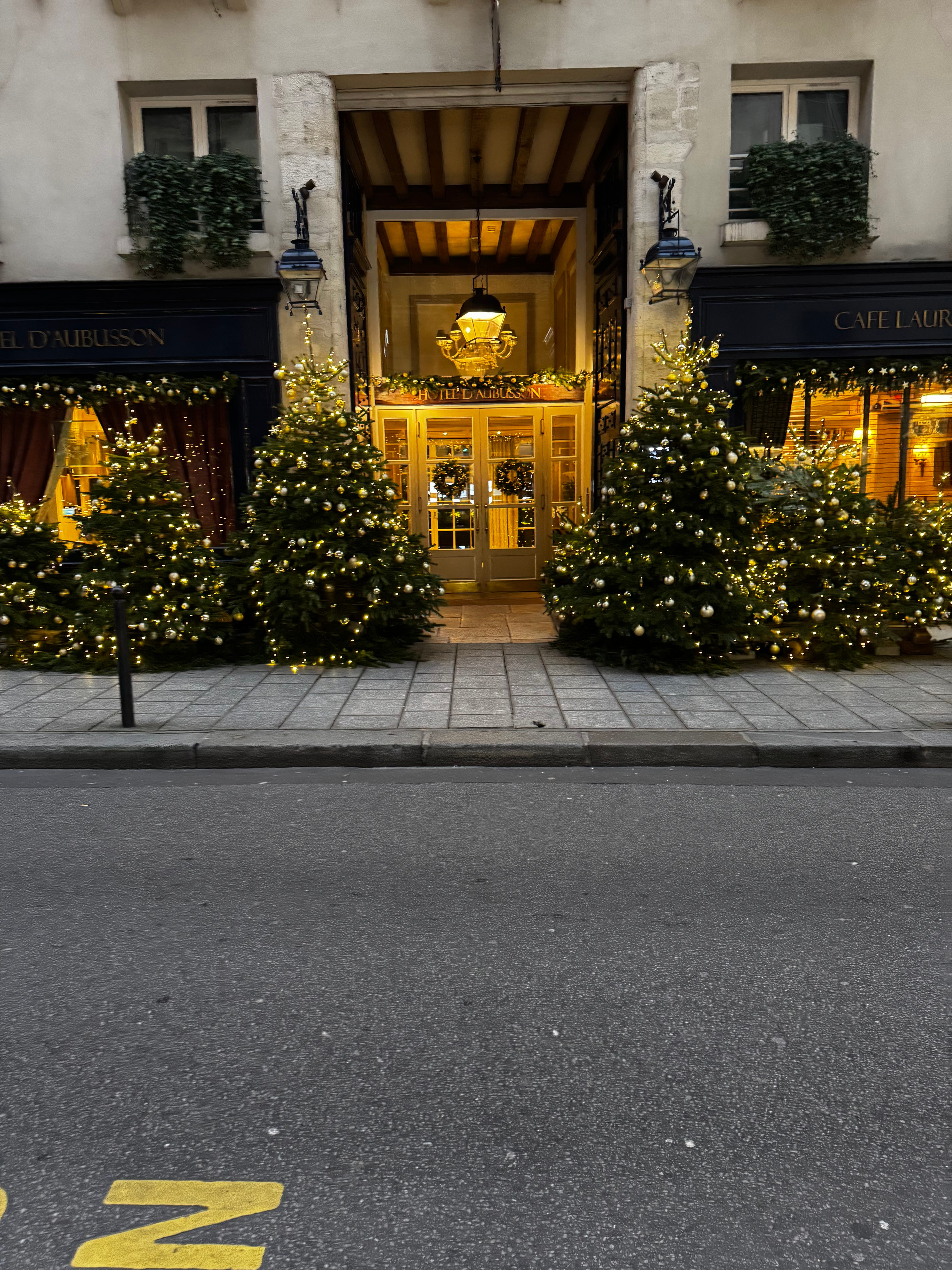 Last night we dipped in to Cheval Blanc across the river for a much-loved cheeseburger at the bar of Tout Paris and knocked back a couple of their signature cocktails while admiring the beautiful Christmas decor. Paris is decorated to the nines for the holidays. Even our little street has decor hanging above and Christmas trees below.