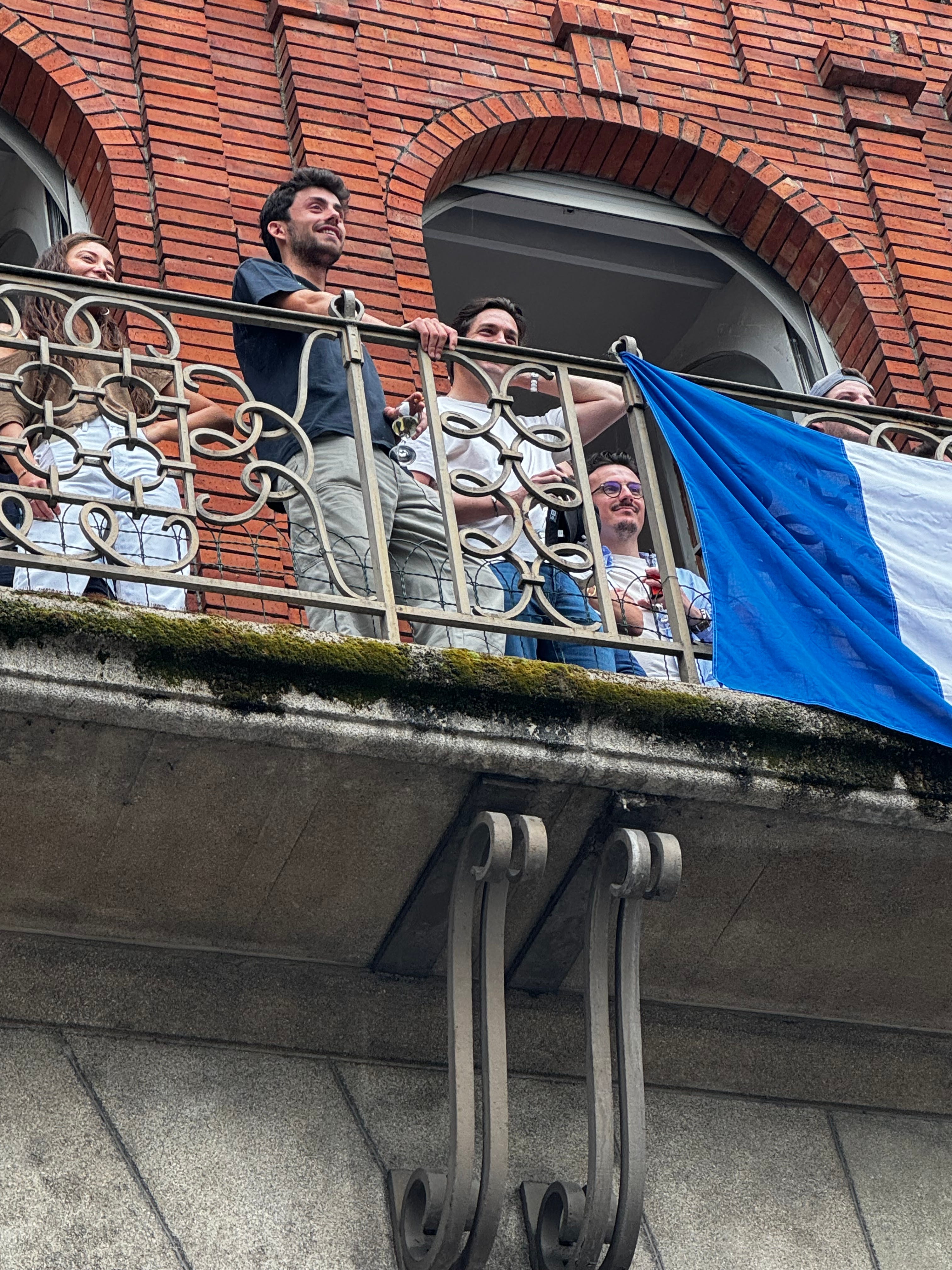 At the neighbors’ we really settled in and watched the floats come down the river and chatted with every expat American we met. it was a ton of fun—for us. The kids were getting restless as it was all people our age, until our landlord mentioned that her son was having a party on the second floor and they should join. No sooner were the words were out of her mouth, than the kids were saying their thanks, and sidling up to the door to run down the stairs to the “kid” party. They had the French flag hanging over the balcony and were belting out The Marseillaise— I believe a great time was had by all!