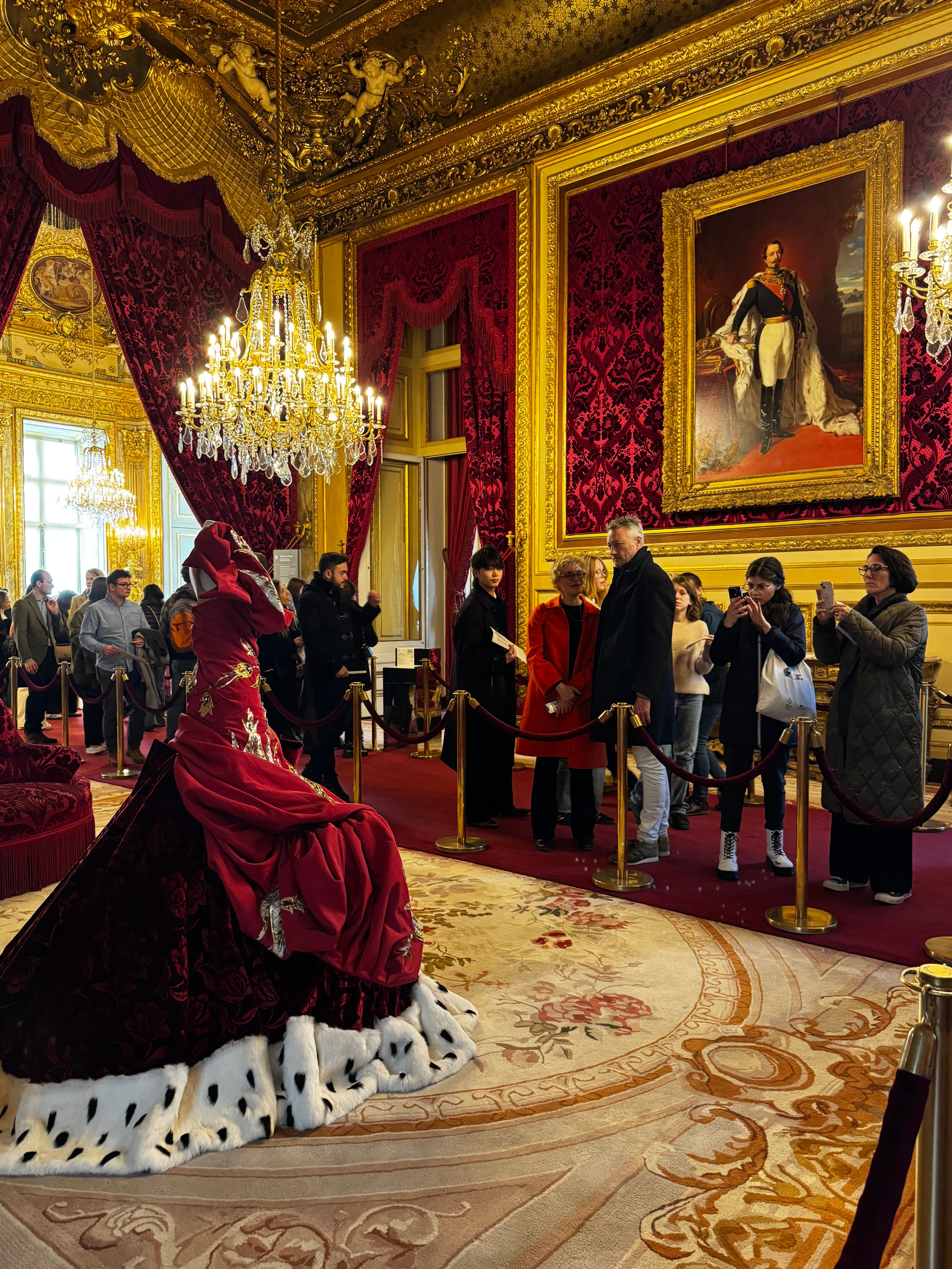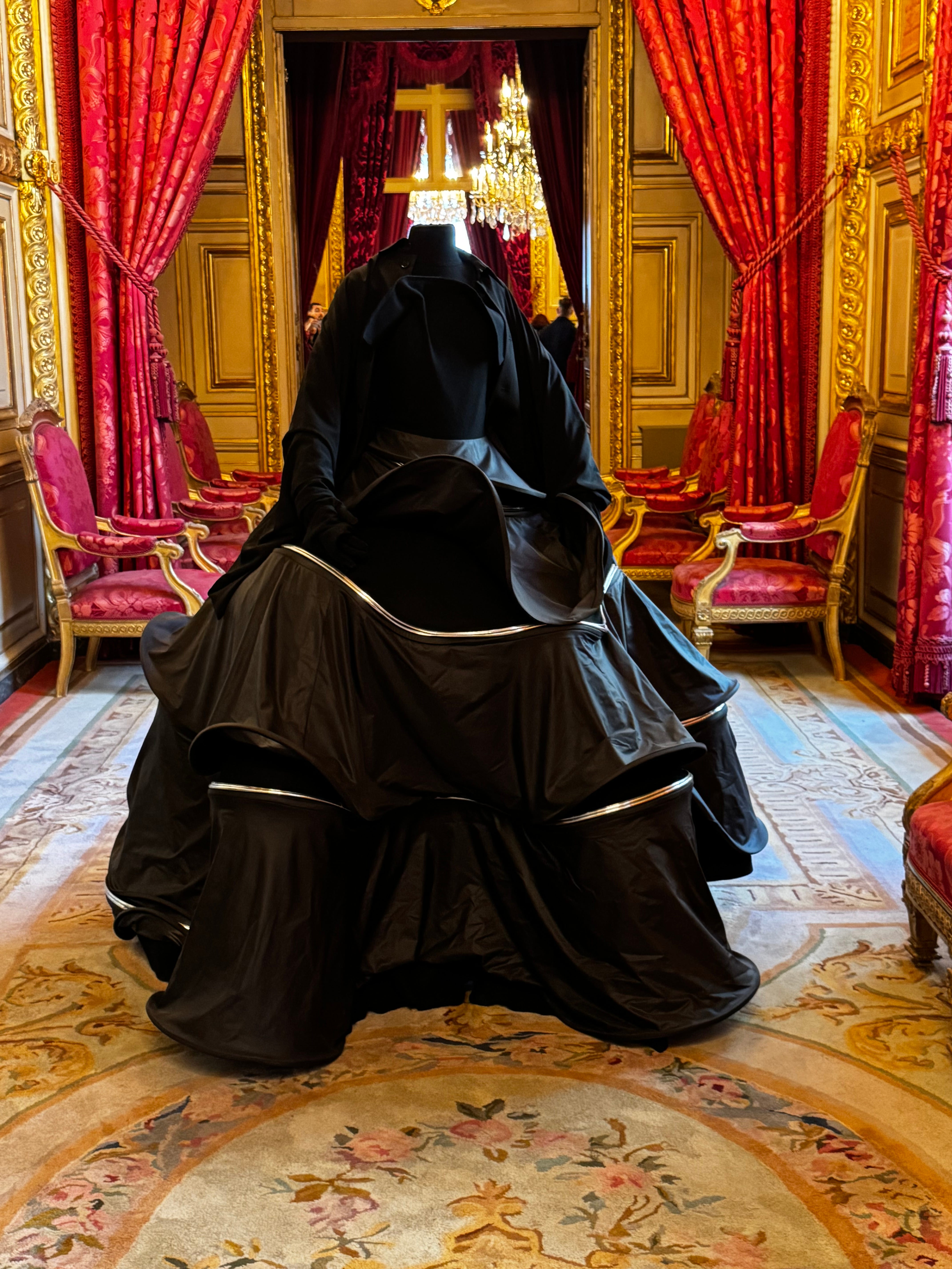 Yesterday, my daughter and I visited the Louvre Couture exhibit. It was very cool to see fashion mixed in with decorative arts. The gowns looked amazing amongst the apartments of state, though it was difficult to imagine that some of these designs were actually ever worn.