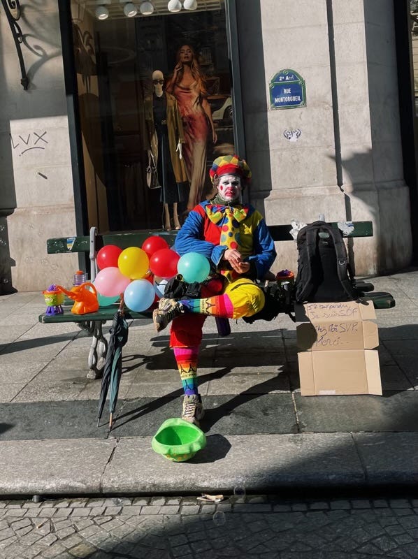 Love it that you're back at it Amy....and integrating Dallas into the culture and couture of Paris...we're stepping up in the world! And nothing more terrifying than an acrimonious clown!!!