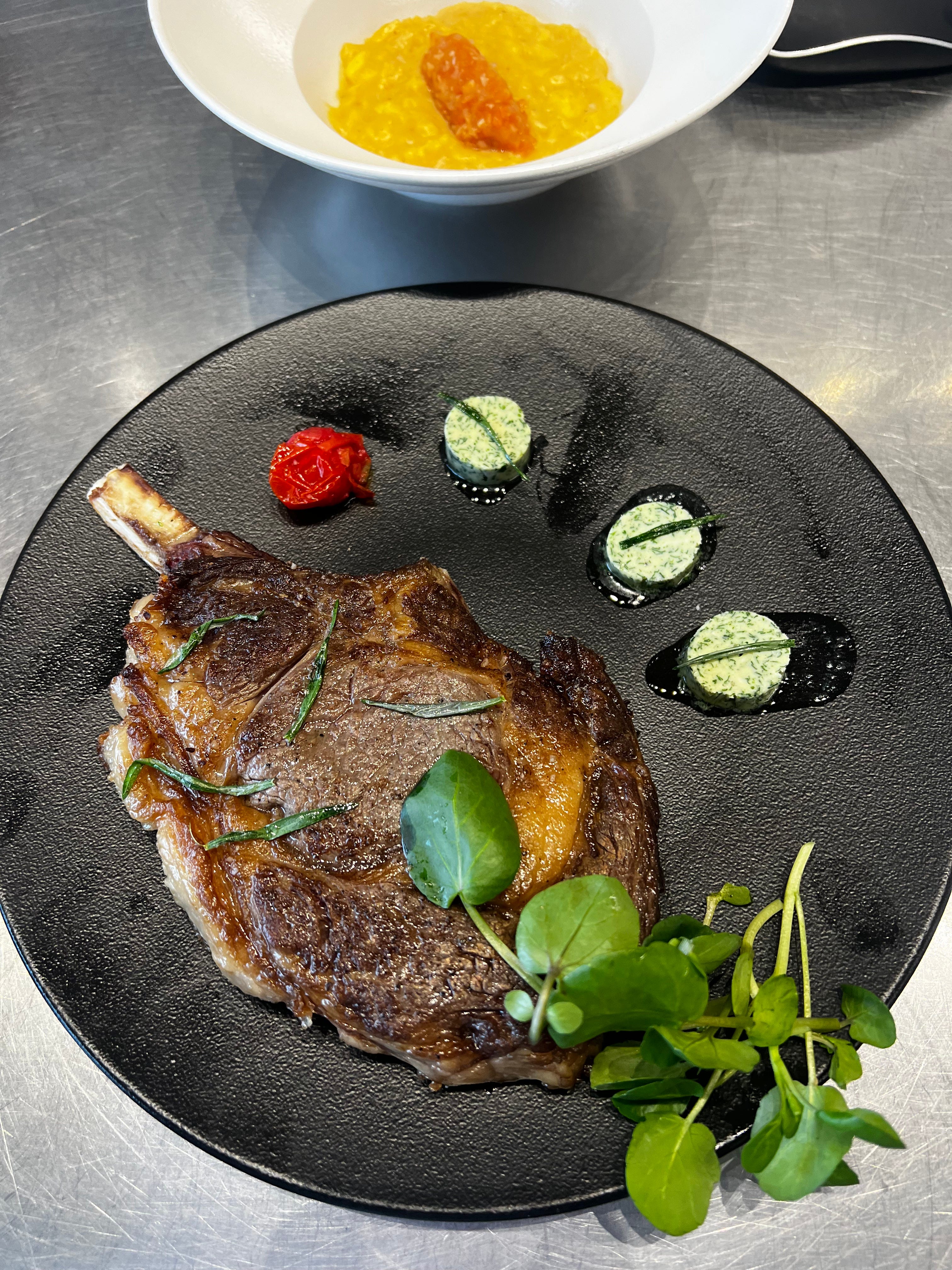 On Thursday before they arrived I was at LCB making a giant entrecôte that would have taken two grown men to eat, with some delicious tarragon butter, just to give it a few more calories and a side of homemade french fries. Also, randomly, we made French-style scrambled eggs with tomato concassée on top. Yummy, but I was trying to save myself for dining with my friends.