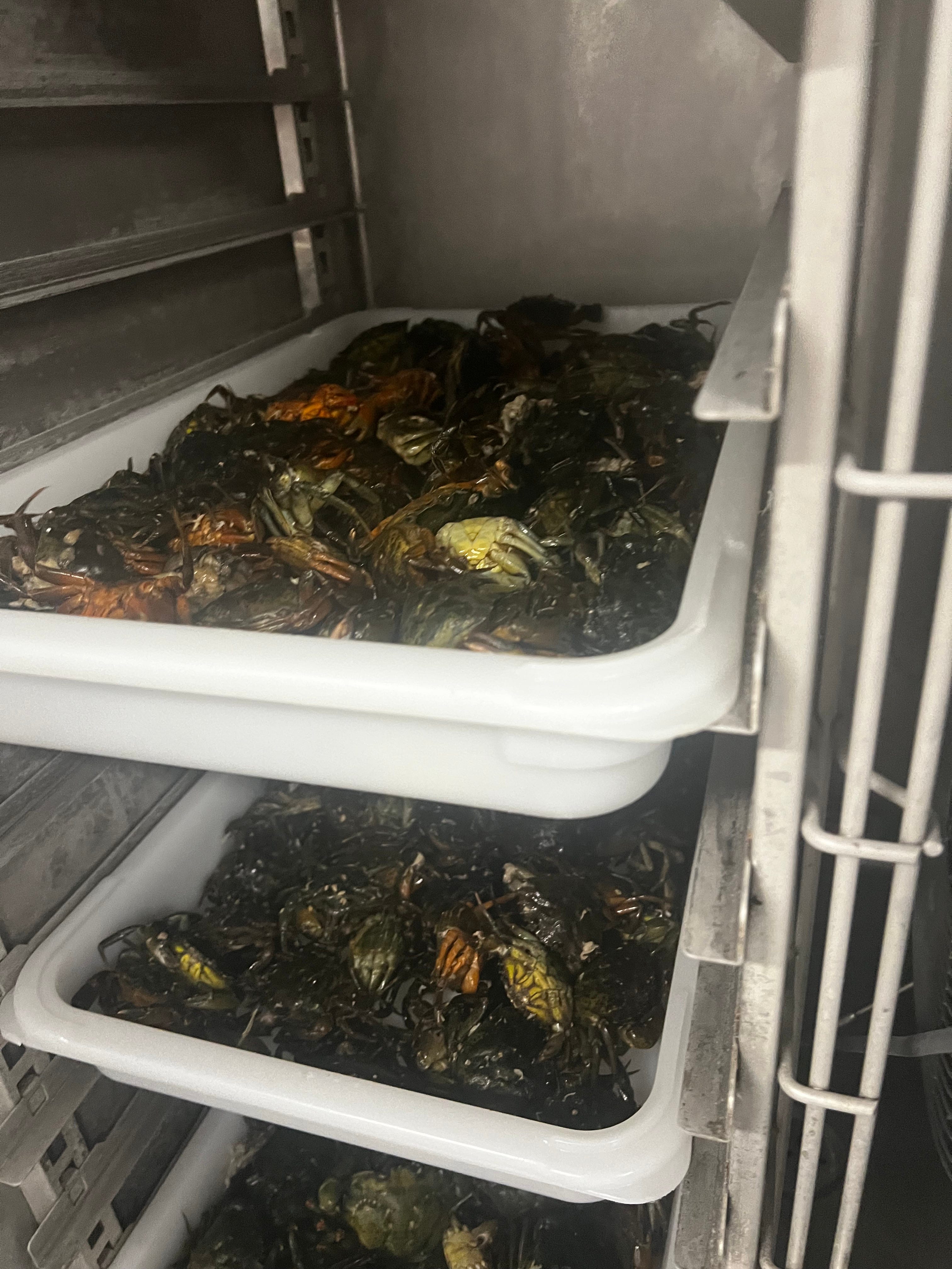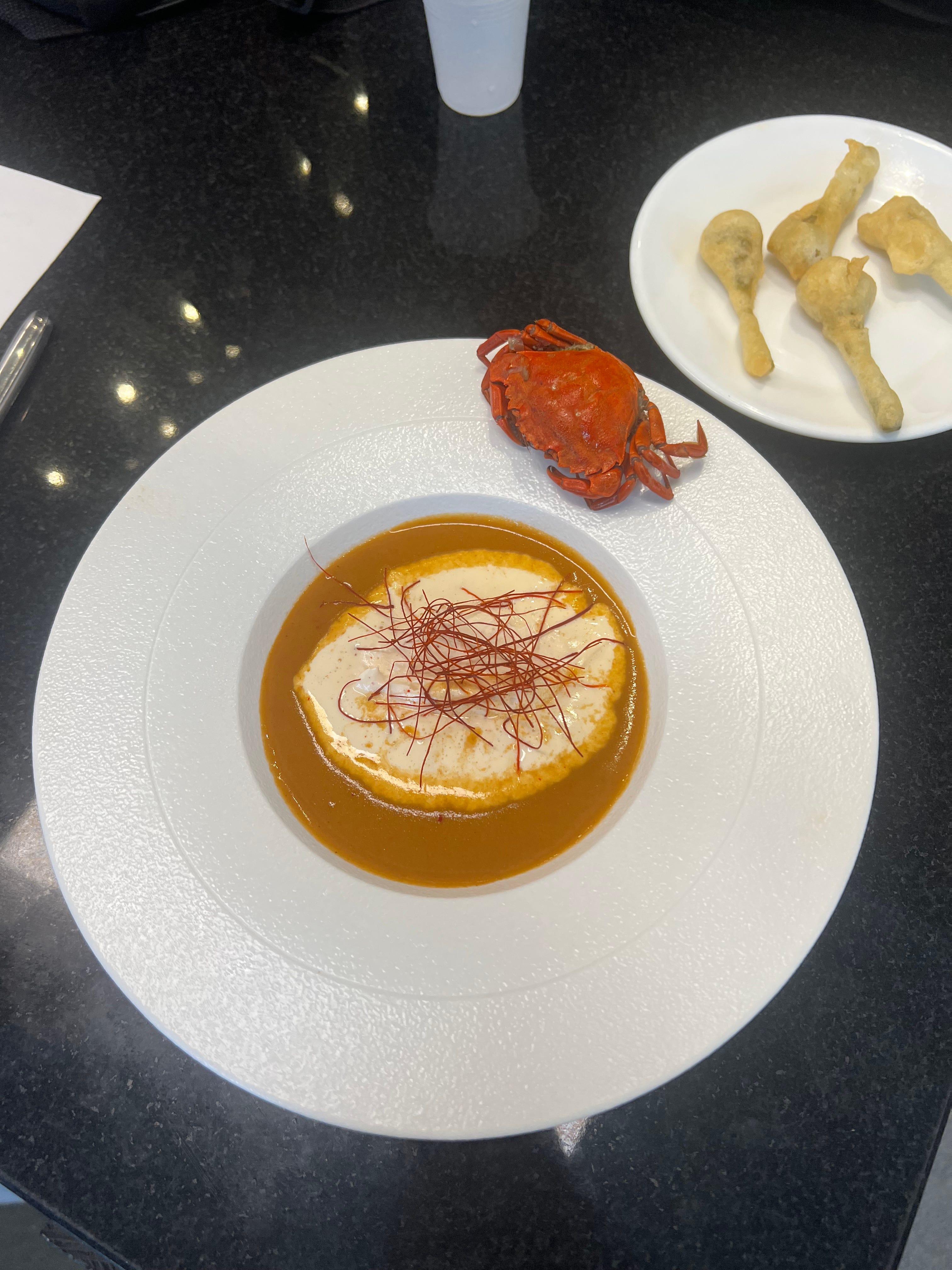 Today we made crab bisque and the crabs were still alive when we began our practical. They must have had a premonition about their fate because they were literally jumping off the trays before they were sautéed in piping hot oil. Honestly, I felt a little bad for them. Right up until the bisque was finished and it was to die for, with a little whipped cream quenelle and some fried artichokes poivrade! With no friends tonight—it’s what’s for dinner!