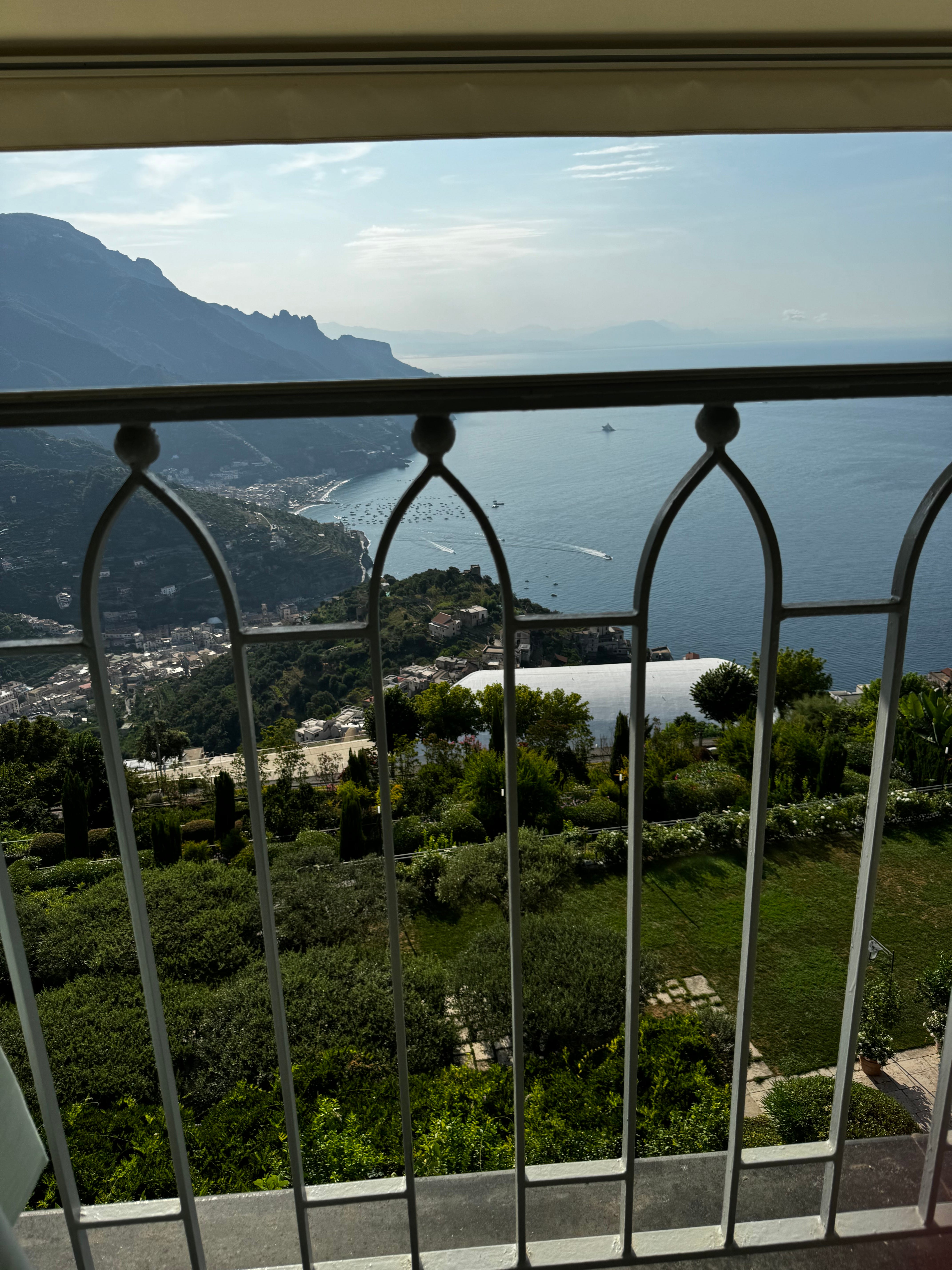 We arrived in Ravello in the afternoon sun and were instantly whisked inside the lobby of our hotel, and given a cool just-pressed lemonade to drink while we waited for the usual handing over of passports, presentations of credit cards and explanations of the amenities on property. This is usually boring stuff, but in Ravello you have an incredible view all the while you wait. We didn’t mind at all.