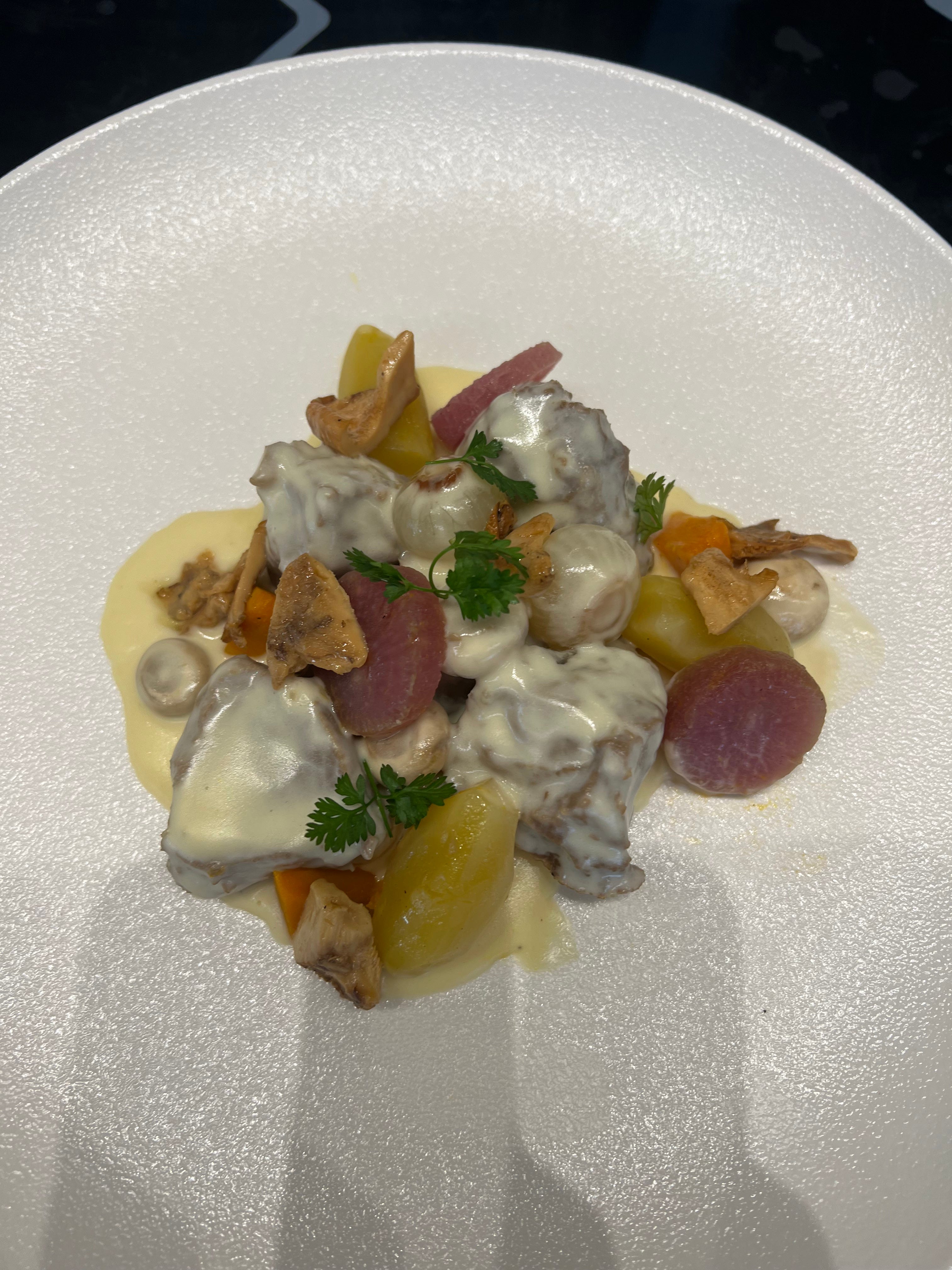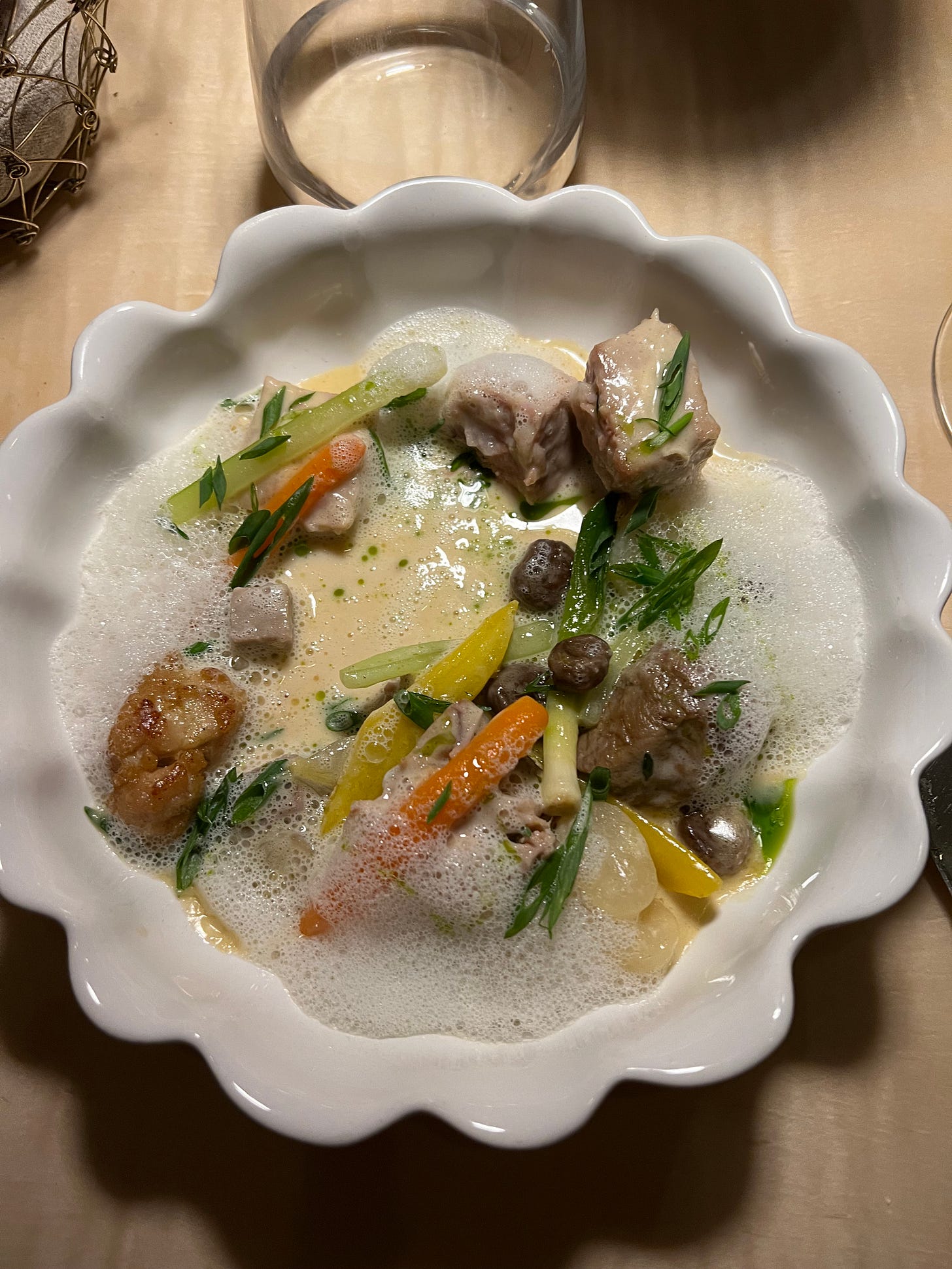 The fancier veal blanquette at dinner tonight! With foam. When I saw it on the menu I knew I had to see it!