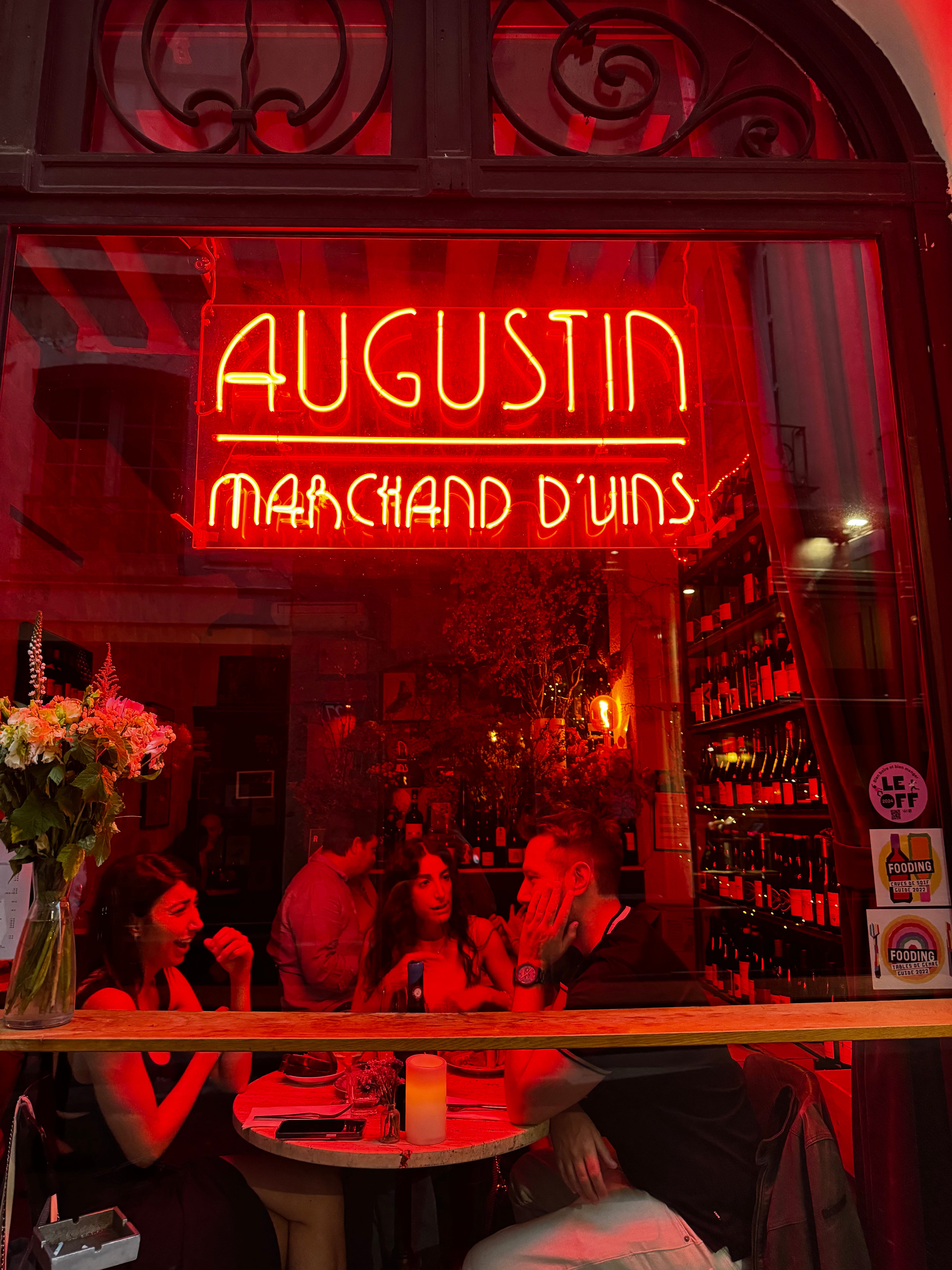 On the way home, we stopped at a new little wine bar I had heard about, that is around the corner from the apartment—Augustin Marchand de Vins. Sounded cute, but not really compelling. Well you never know do you? Life is full of surprises and here is where the evening gets interesting. This place was the bomb!