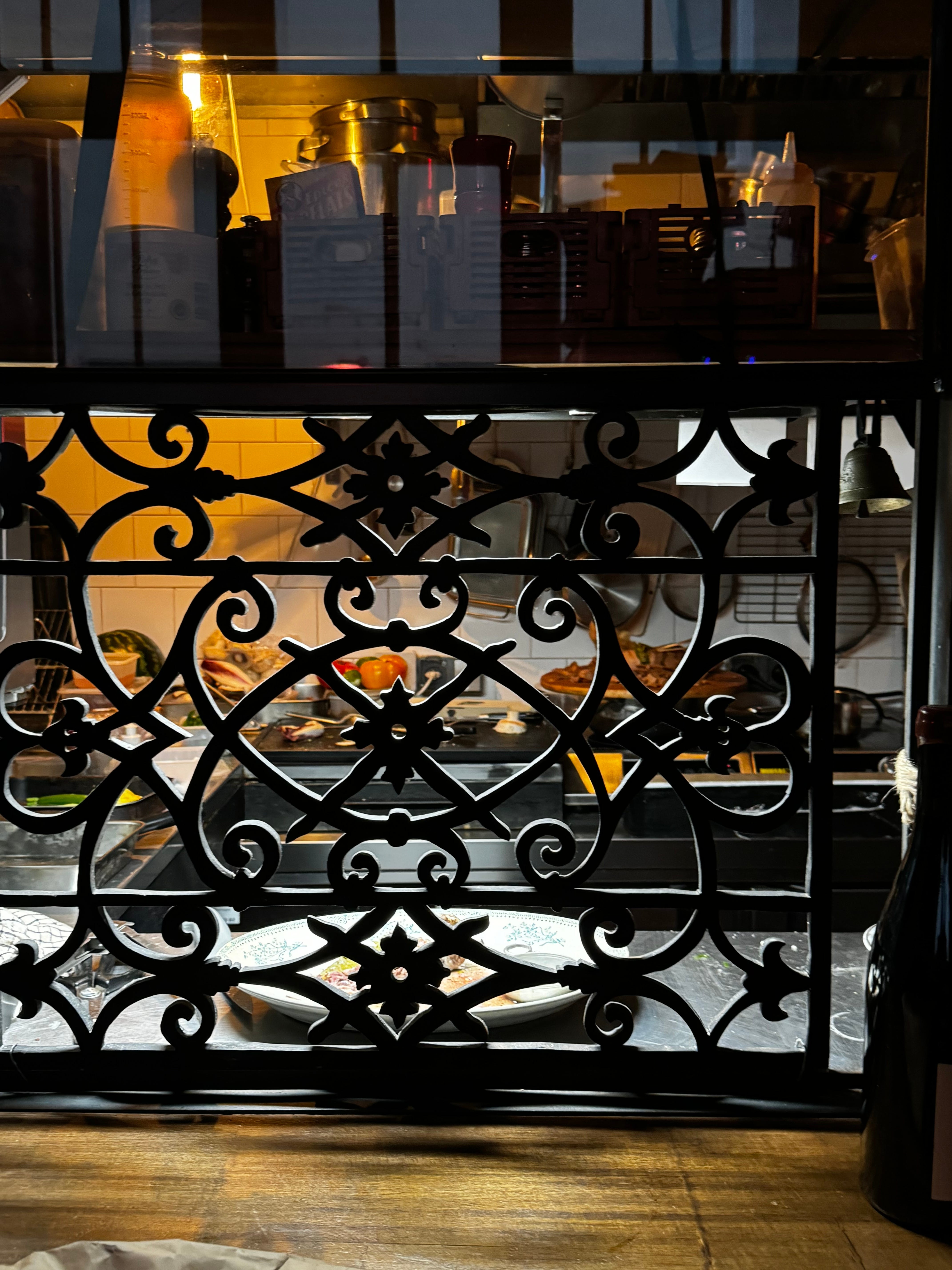 It was such a fun surprise! And the content of the sculpture was either a guinea hen or maybe a Cornish hen baked in the clay pot —smelling delicious! Augustin came over to our table and we immediately started asking questions. He told us the woman was the chef, and also an artist, and she makes one sculpture a day with the bird in it and whoever pre-orders it first gets it for that evening. It was so unexpected! Then he takes us back by the “kitchen”, which I am telling you was the size of an easy-bake oven. So tiny! And in front of the tiny kitchen is a tiny counter with one seat, and separating the seat from the kitchen is a confession screen like you have in Catholic churches— which Augustin told us in complete sincerity was for exactly that—confession. He said, “Come and tell her your sins and all will be forgiven!” It was pure theater and I loved it!